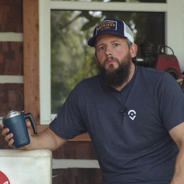 - Our AM travel mug has coffee on lock – 17 oz. Heavy duty stainless steel coffee mug. Non-slip rubber base. Triple-walled, vacuum-sealed insulation.